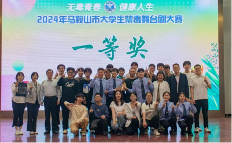 荣获2024年马鞍山市大学生禁毒舞台剧大赛一等奖。同时,罗晓珊老师获最佳导演、曹宇老师获最佳编剧、姚德利同学获最佳男主角。