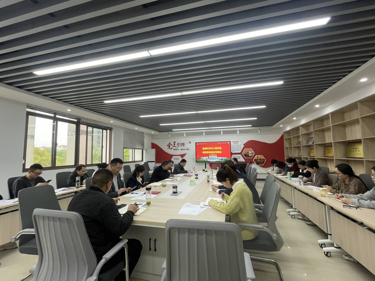 在汇文楼A302召开课程思政建设专题会。学院领导班子成员、各系室主任、各支部书记及全体辅导员参加会议,会议由张洪亮副院长主持。