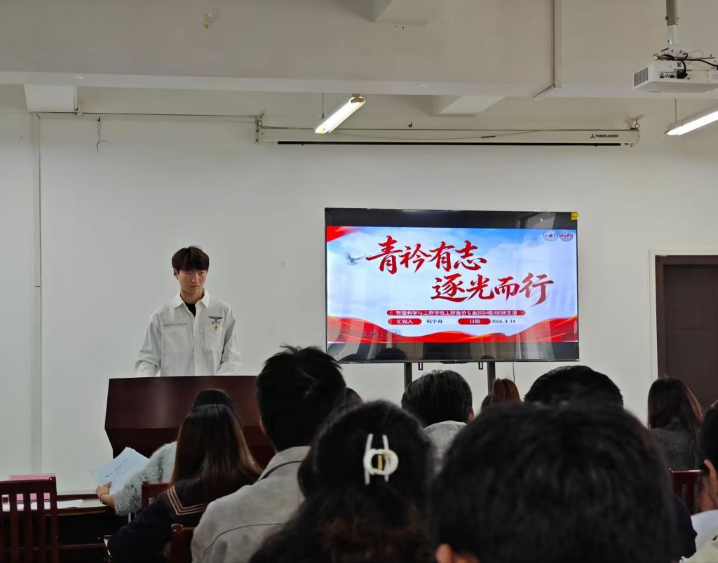 答辩现场,各团支部围绕思想教育、学风建设、实践服务、荣誉成果等方面,通过PPT,以数据支撑、案例佐证、图文并茂的形式,全面呈现支部建设亮点与工作实效。工业工程243班团支部依托详实的竞赛成果与获奖数据,展现扎实学风;大数据管理与应用254班团支部以组织建设和思想引领为主线,系统展示理论学习、红色教育等成果。在评审环节,李军慧对各支部成果给予充分肯定,并提出三点改进建议:一是聚焦团支部特色,打造具有辨识度的支部品牌,避免同质化建设;二是创新活动形式与内容,结合青年学生特点设计沉浸式、互动式活动,切实增强团支部凝聚力和团员归属感;三是深化思想引领实效,推动理论学习与实践服务有机融合,让思想教育更接地气、更入人心。