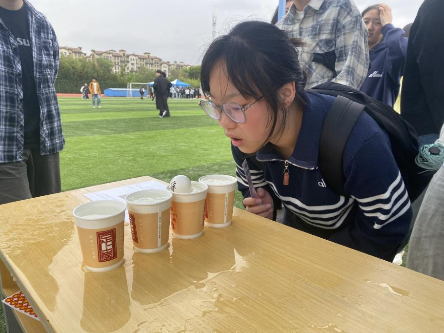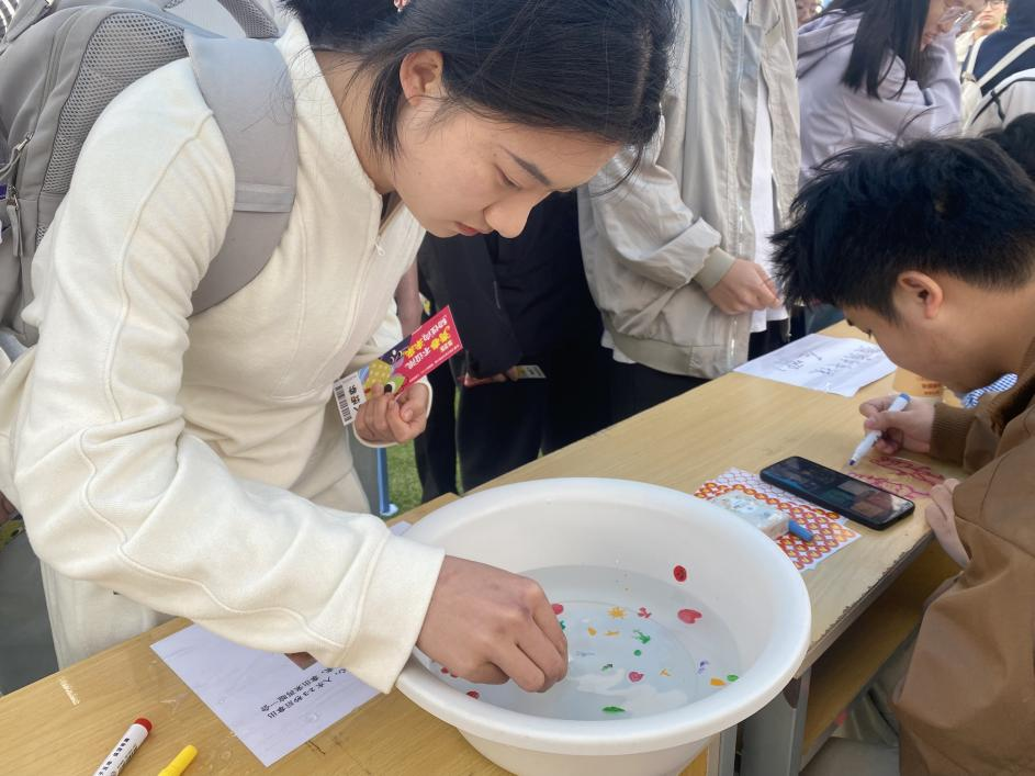 围绕“减压、专注、表达、互动、创造”五个关键词,学院设计推出“乒乓球水上漂”“乒乓球躲猫猫”“漂浮笔画画”“emoji猜词”和“光盘DIY”五项趣味项目。同学们屏息吹气让乒乓球依次漂过纸杯,在专注挑战中舒缓情绪;观察变换位置的纸杯找出藏球,在轻松互动中转移压力;勺背作画入水成贴,在创意实践中放松身心;谐音梗相互交流、积极抢答,在互动中释放压力、增进情谊;通过手绘光盘并录入喜爱音乐,在创造中舒缓情绪、获得成就感。