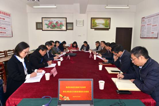 11月19日上午,校党委副书记祖明、工程研究院副院长王璐、安全保卫部副部长何义、科研处副处长蔡征宇、教务处副处长张玉萍、资产与实验室管理处办公室主任杨敏一行六人来金石堂