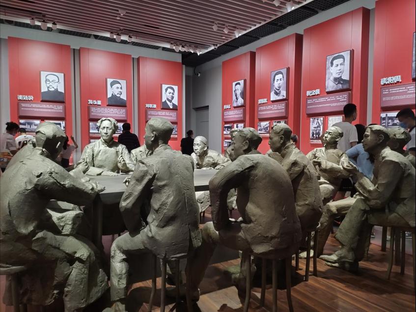 党史学习团队参观了中共一大会址和一大纪念馆。参观过程中,从会址内会议桌上的茶具摆设,到展厅中的《共产党宣言》中文首译本,百年前那段“觉醒年代”的历史正得到用心呈现。在讲解员的介绍下,实践队员先后参观了“历史选择、伟大开端”、“民众觉醒、主义抉择”、“开天辟地、日出东方”、“砥砺前行、光辉历程”等专题展厅。走进纪念馆,回顾历史,铭记奋斗历程;走出纪念馆,展望未来,勇担时代使命。通过此次实践学习,实践队员重温了中共建党初心,更加激发了砥砺前行、开拓奋进的激情斗志。从党的百年伟大奋斗历程中汲取前进的智慧和力量,答好新时代的新答卷。