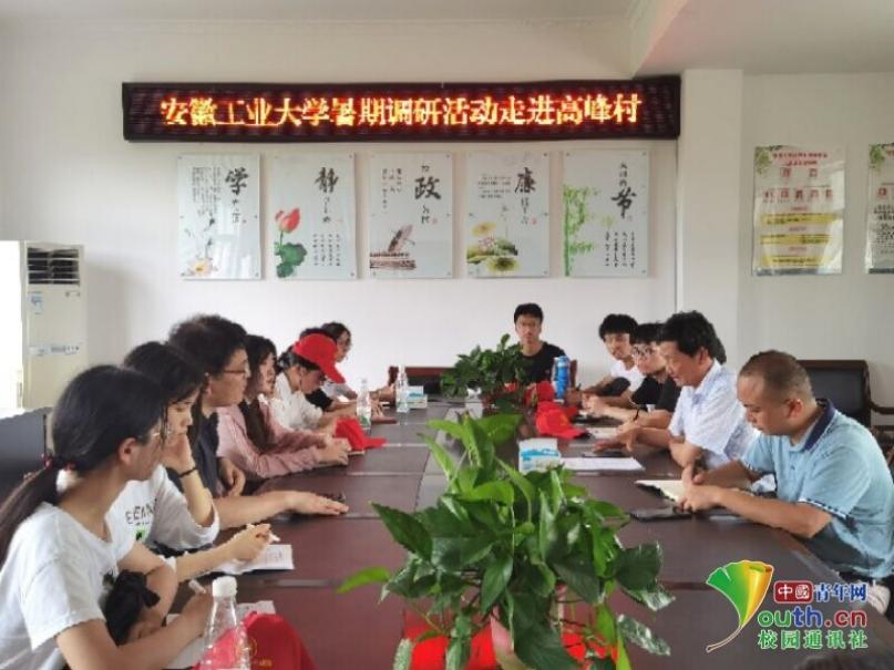 图为实践队员来到高峰村与王书记进行交谈。中国青年网通讯员龚浩月摄