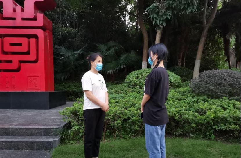 图为实践队员在杏花公园内对路人进行采访。