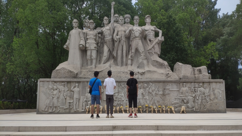图为实践队员在英雄园瞻仰和缅怀革命烈士。