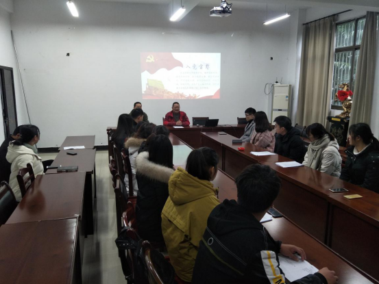 12月20日上午,金石堂 在学院党员活动室举行预备党员入党宣誓仪式,学院党委书记方承武、副书记汪春胜、各学生支部书记和2018年下半年新发展的全体学生党员参加。