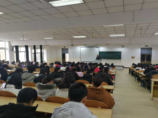 1月10日中午,金石堂 在阶教101召开2017级期末年级会,该年级所有学生参加,2017级辅导员邢维迢主讲。