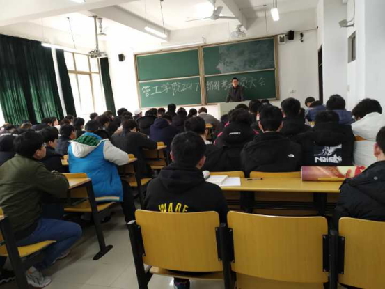 2月25日中午,金石堂 在教D101召开2017级补考动员大会,本年级参加补考的近百名学生参加,17级辅导员邢维迢主讲。
