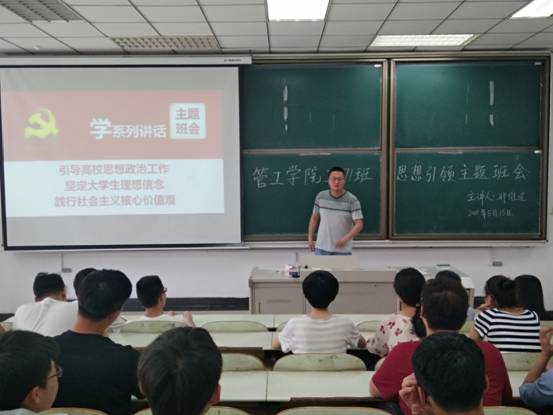 工171班在教三南202开展了以法制教育为主题的班会。由辅导员刑维迢担任主讲,工171班全体同学参与。