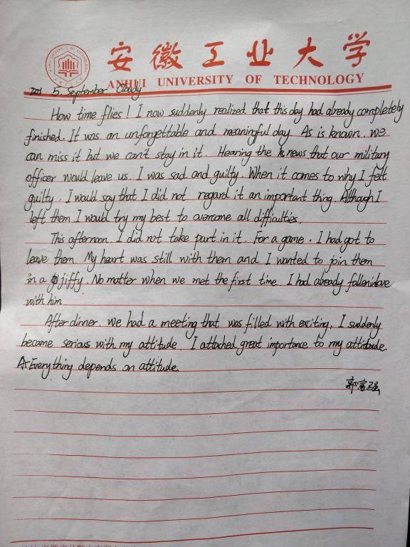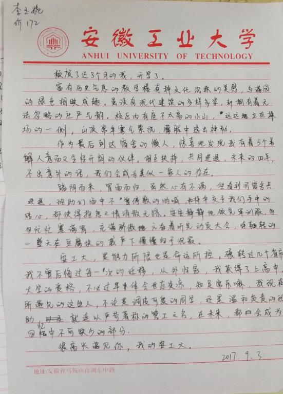 作诗抒情、英文表述,17级新生找寻自己最合适的形式,以笔抒情,记录了新生每天的所视所思所感.(撰稿:邢维迢)