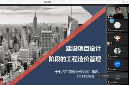 邀请中国十七冶集团工程设计分公司党总支书记、经理黄凯于2022年5月6日上午通过腾讯会议线上开展了“以设计为主导的工程成本管理体系构建”为主题的专题报告。