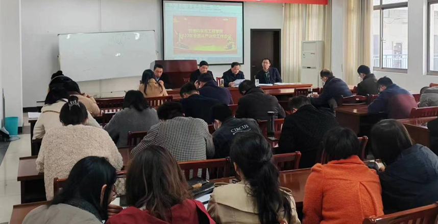3月27日下午,管工学院召开2023年全面从严治党工作会议。学院党委书记汪春胜主持会议,管工学院全体教师参加会议。