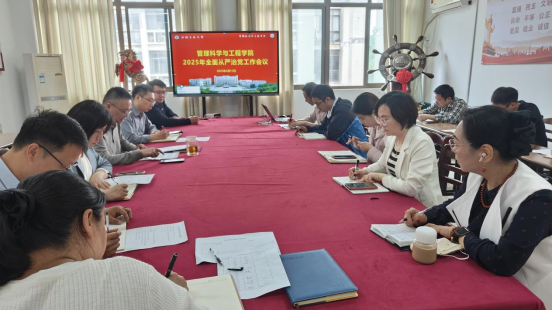 4月11日上午,管理科学与工程学院在汇文楼A302会议室召开2025年全面从严治党工作会议,院领导班子成员、党委委员、纪委委员、党支部书记、系室主任、组织员参加会议,会议由院党委书记王军主持。