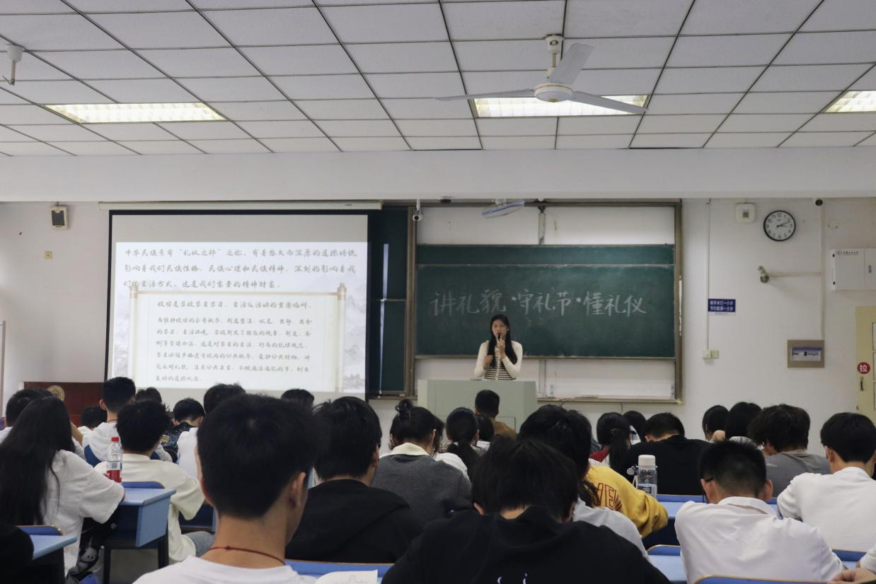 为进一步弘扬中华优秀传统文化,营造文明和谐的校园文化氛围,5月10日下午,管理科学与工程学院于东教北307开展“讲礼貌·守礼节·懂礼仪”主题宣讲会。活动由第十二届团委学生会主席朱仔仪主讲,各年级学生代表100余人参加。