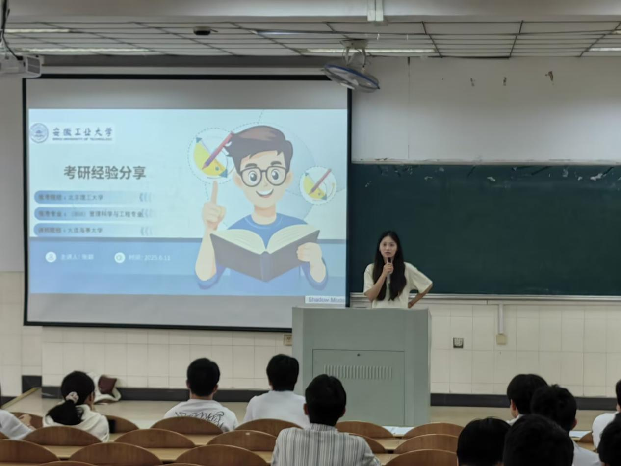 活动伊始,优秀的考研学长学姐纷纷结合自己备考经历,向2022级同学分享了考研择校的经验:曾子涵分享道,首先得综合评估自己的学习能力,合理的选择学校是上岸的第一步;张颖同学在择校的基础上,着重强调复习刷题时,切勿囫囵吞枣,要把每题吃透再进行下一题,要打牢基础;张月兰同学分享了自己的考研时间脉络,不同时间段如何开展复习,同时,她还强调考研要重视心态的调节,以及如何适当解压;施凯围绕工业工程考研方向,合理指导学习计划制定,明确要充分保证好备考节奏;王慧贤则是针对管理类综合联考的复习方法进行解析,提醒大家要重视复习效率,合理利用时间。