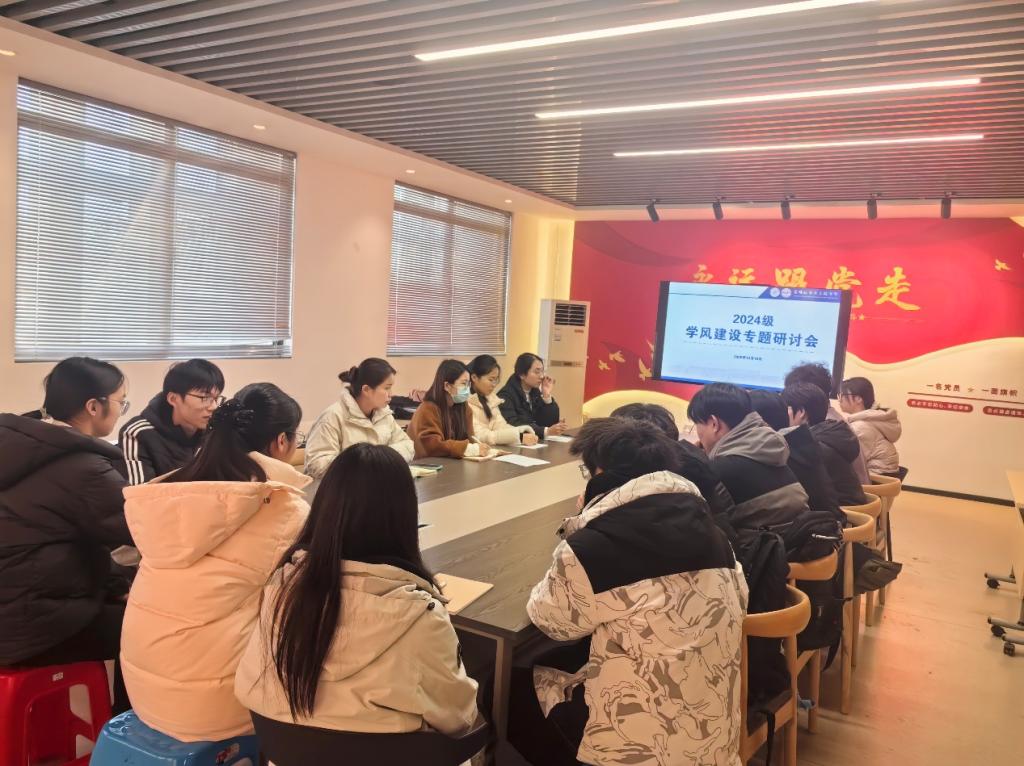 12月18日,管理科学与工程学院于汇文楼A502召开2024级学风建设专题研讨会,2024级辅导员李军慧、孙如梦,2024级全体学习委员参加了本次研讨。
