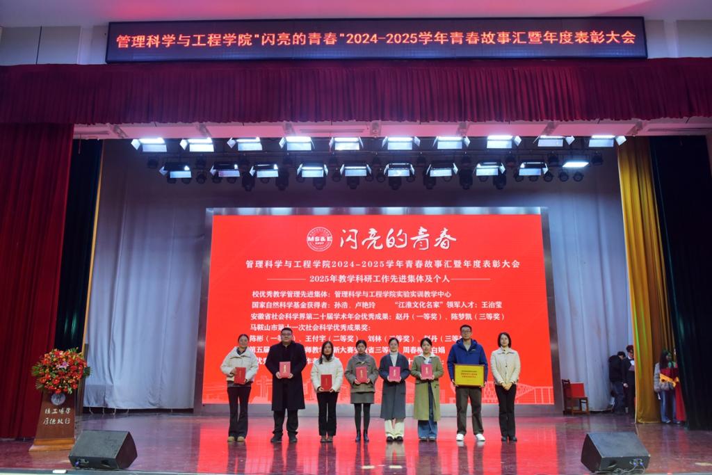 12月30日晚,管理科学与工程学院2024-2025学年青春故事汇暨年度表彰大会在秀山校区大学生活动中心举行。校党委常委、副校长闵凡飞,校党委常委、宣传部、统战部部长王菁,学生工作部、研究生院、党委教师工作部、发展规划处、教务处、科研院相关部门负责同志,学院党政领导班子,各系室主任、支部书记、教师代表、全体辅导员老师、受表彰的先进集体和先进个人及各年级学生代表等共500余人参加大会。