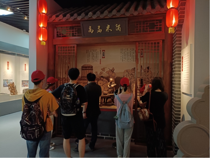 图为工作人员为实践队员讲解广德高庙米酒文化。