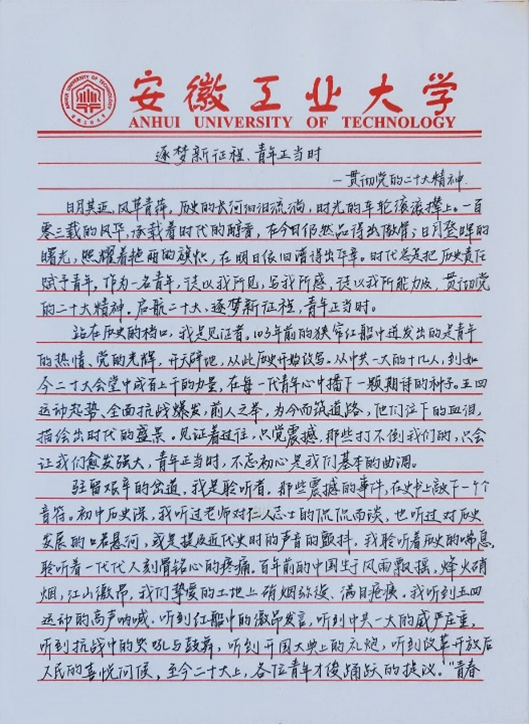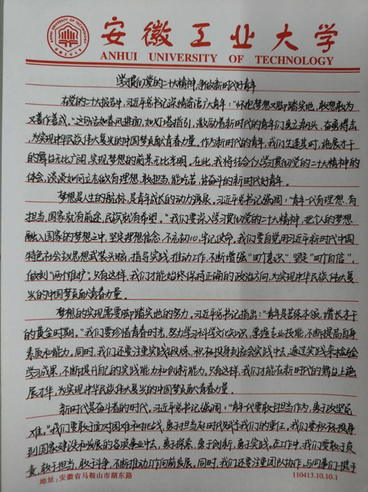 为深入学习贯彻党的二十大精神,引导学生奋进新征程、建功新时代,为全面建设社会主义现代化国家、全面推进中华民族伟大复兴贡献青春力量,5月15日至27日期间,管工学院组织开展“学习贯彻党的二十大精神”主题征文活动。