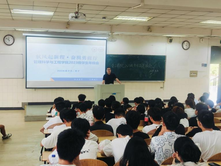 为进一步保障新学期工作有序开展,引导学生把握学期重点,9月10日中午,管工学院在阶教101召开以“秋风起新程,奋楫勇前行”为主题的2023级学生年级会。会议由辅导员曹宇主持,2023级全体学生参加此次大会。