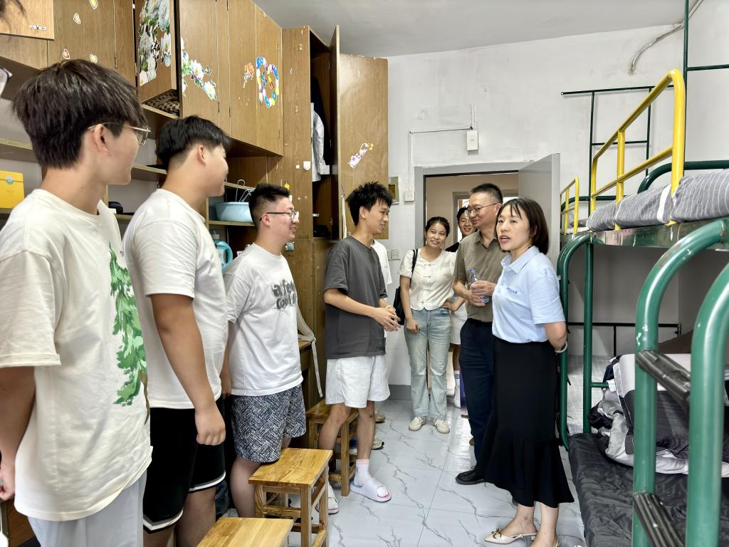 为深入了解2024级新生入学情况,倾听他们的心声,帮助新生尽快融入大学生活,营造温馨的生活与学习环境,9月7日下午,学院党委书记王军、副书记、副院长、纪委书记赵颖以及新生辅导员李军慧、孙茹梦走访了新生宿舍。
