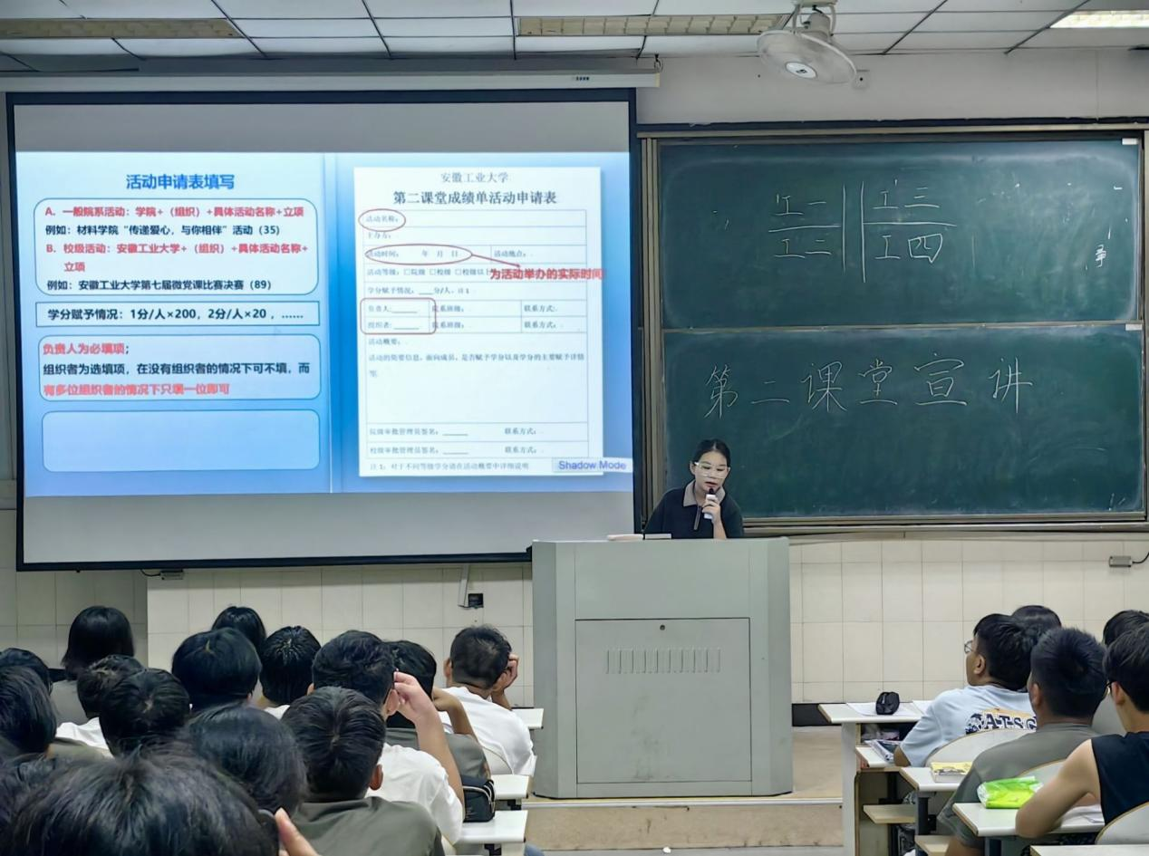 为帮助2024级新生适应大学生活,了解学校第二课堂成绩单制度并积极参与校园活动,管理科学与工程学院团委学生会于9月14日在阶教204、205、301开展“多彩第二课堂,成就青春梦想”第二课堂宣讲活动。此次活动由校第二课堂数据部部长王杰民、管工学院第二课堂部长黄嘉玥、管工学院第二课堂谢明辉宣讲。