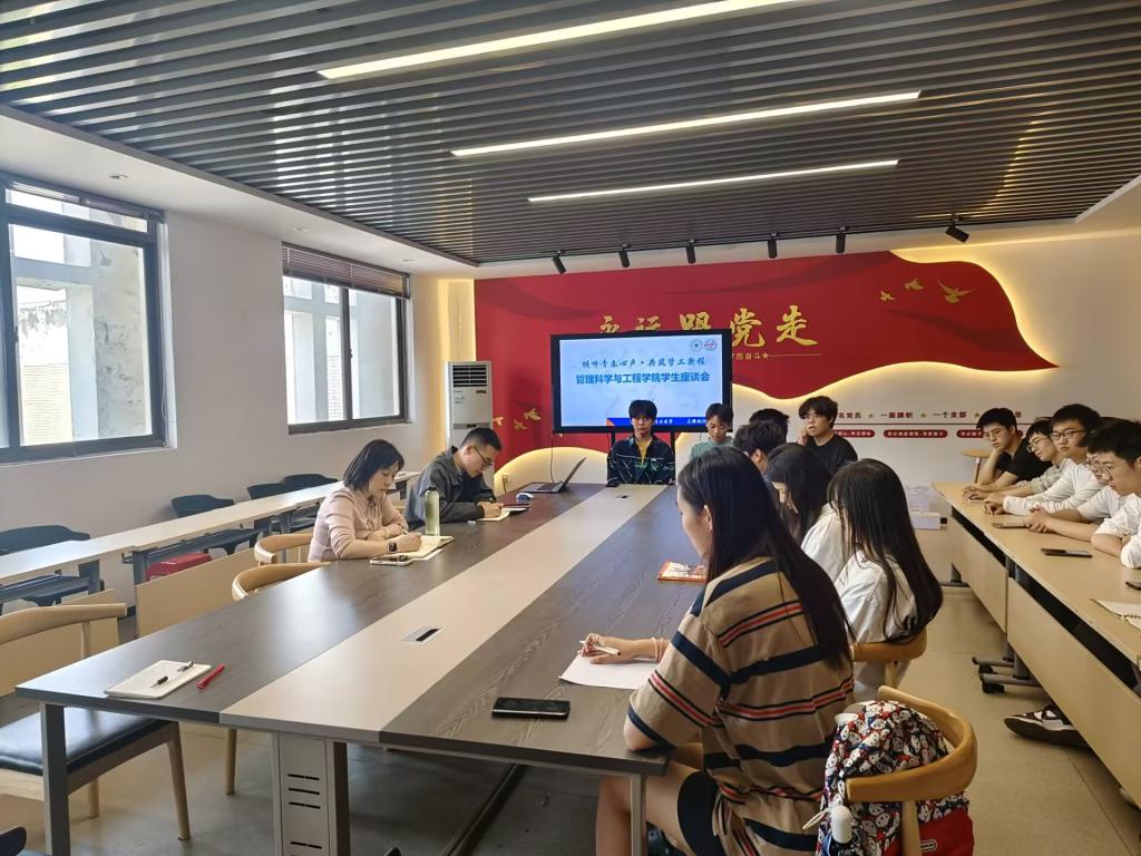 为进一步了解学生需求,优化学院教育教学管理,4月17日,管理科学与工程学院在汇文楼A502召开“倾听青春心声·共筑管工新程”学生座谈会,院党委副书记、副院长、纪委书记赵颖,辅导员曹宇,2023级学生代表参加此次会议。