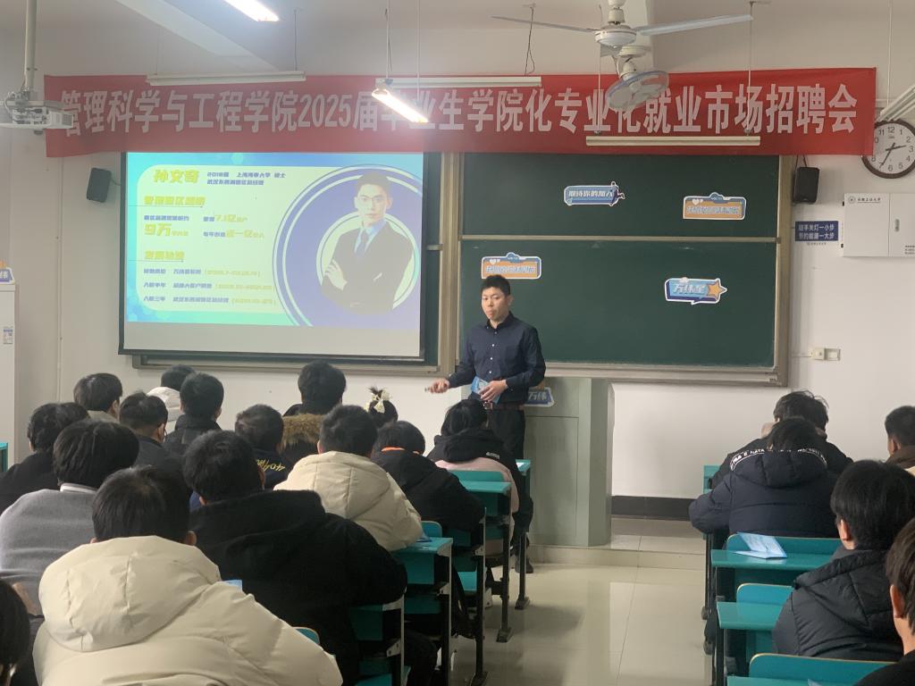 2月26日,管理科学与工程学院2021级在教D402和501教室成功举办了学院化、专业化招聘会。本次招聘会邀请了万纬物流和瑞顺物流两家知名企业来校宣讲,作为学院深化产教融合的重要实践,本次招聘会通过企业宣讲、行业解读、互动交流三大模块,为2024届毕业生搭建起精准就业服务平台。招聘会前,学院党委副书记、纪委书记、副院长赵颖、毕业班辅导员任静、钱丹丹与企业负责人就招聘情况和后续合作进行了深入交流。