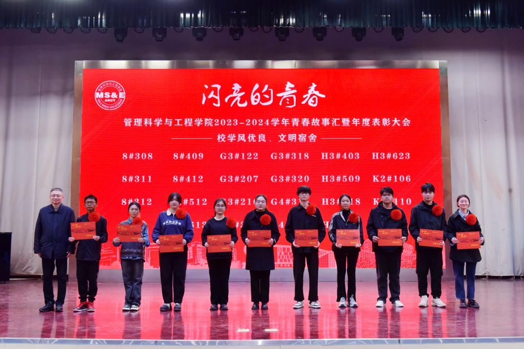 1月2日晚,管理科学与工程学院2023-2024学年青春故事汇暨年度表彰大会在秀山校区大学生活动中心举行。校团委、学工部、研究生院、教务处相关部门负责同志,学院党政领导班子,各系室主任、教师代表、全体辅导员老师、受表彰的先进集体和先进个人及各年级学生代表等共500余人参加大会。