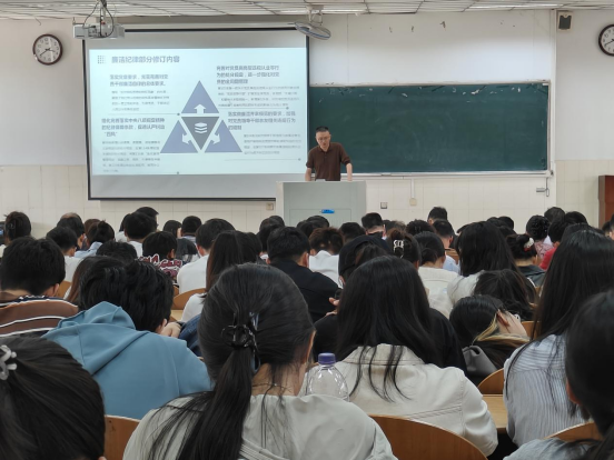 5月13日下午,管理科学与工程学院党委书记王军在秀山校区东教一阶201教室为全院教师党员、学生党员上党纪学习教育专题党课。