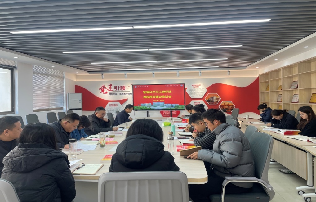 课程思政是落实立德树人根本任务的关键环节,是培养德智体美劳全面发展的社会主义建设者和接班人的重要途径。为深入贯彻落实新时代教育改革精神,在听评课中重点关注课程思政元素融入课堂教学情况,2025年11月19日上午,管理科学与工程学院召开了本学期课程思政建设推进会,学院课程思政建设领导小组成员、各系支部书记、科级干部和辅导员参加了会议,会议由王军书记主持。