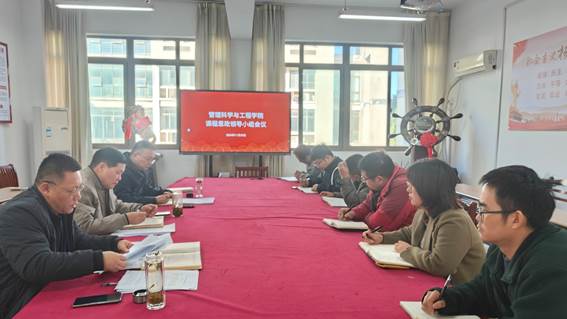 为深入贯彻新时代教育改革精神,推动课程思政工作走深走实,2024年11月29日下午,管理科学与工程学院召开了本学期课程思政建设推进会,学院课程思政建设领导小组成员参加了会议,会议由王军书记主持。