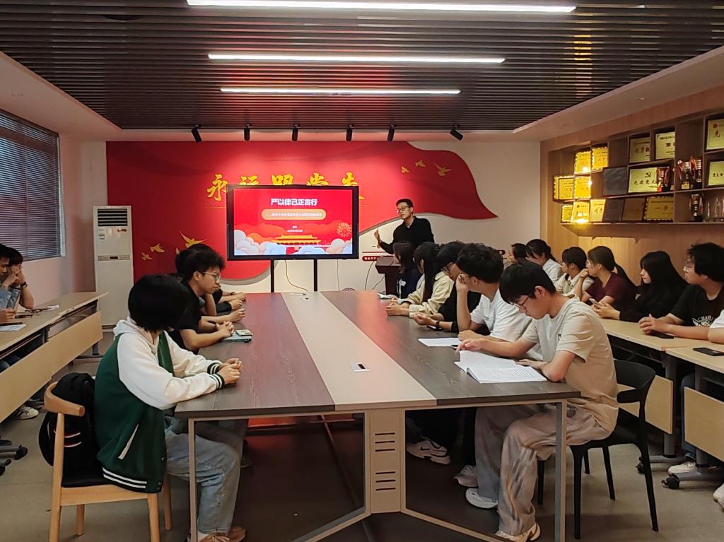 为深入学习贯彻落实中央八项规定精神,加强学生党员作风建设,5月23日,管理科学与工程学院信管学生党支部在汇文楼A502开展“严以律己正言行——青年大学生落实中央八项规定精神宣讲”专题党课。党支部书记曹宇主讲,支部全体党员参加学习。