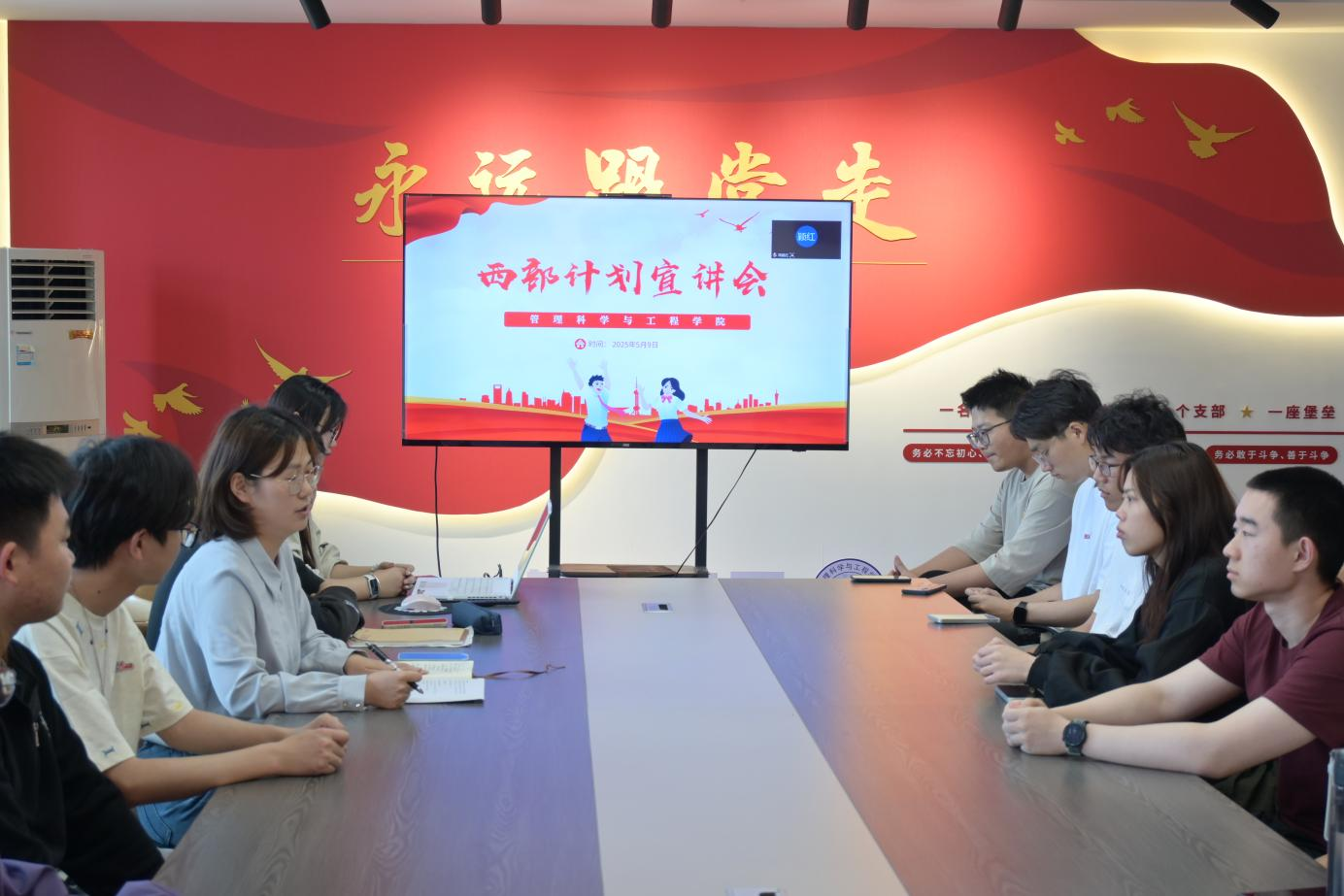 为深入学习习近平总书记给谢依特小学戍边支教西部计划志愿者服务队队员回信精神,引导青年学子扎根基层,5月9日,管理科学与工程学院在汇文楼A502召开“西部计划”专题宣讲会。宣讲会由院团委书记赵玉婷主持,2022级、2023级学生代表参会。