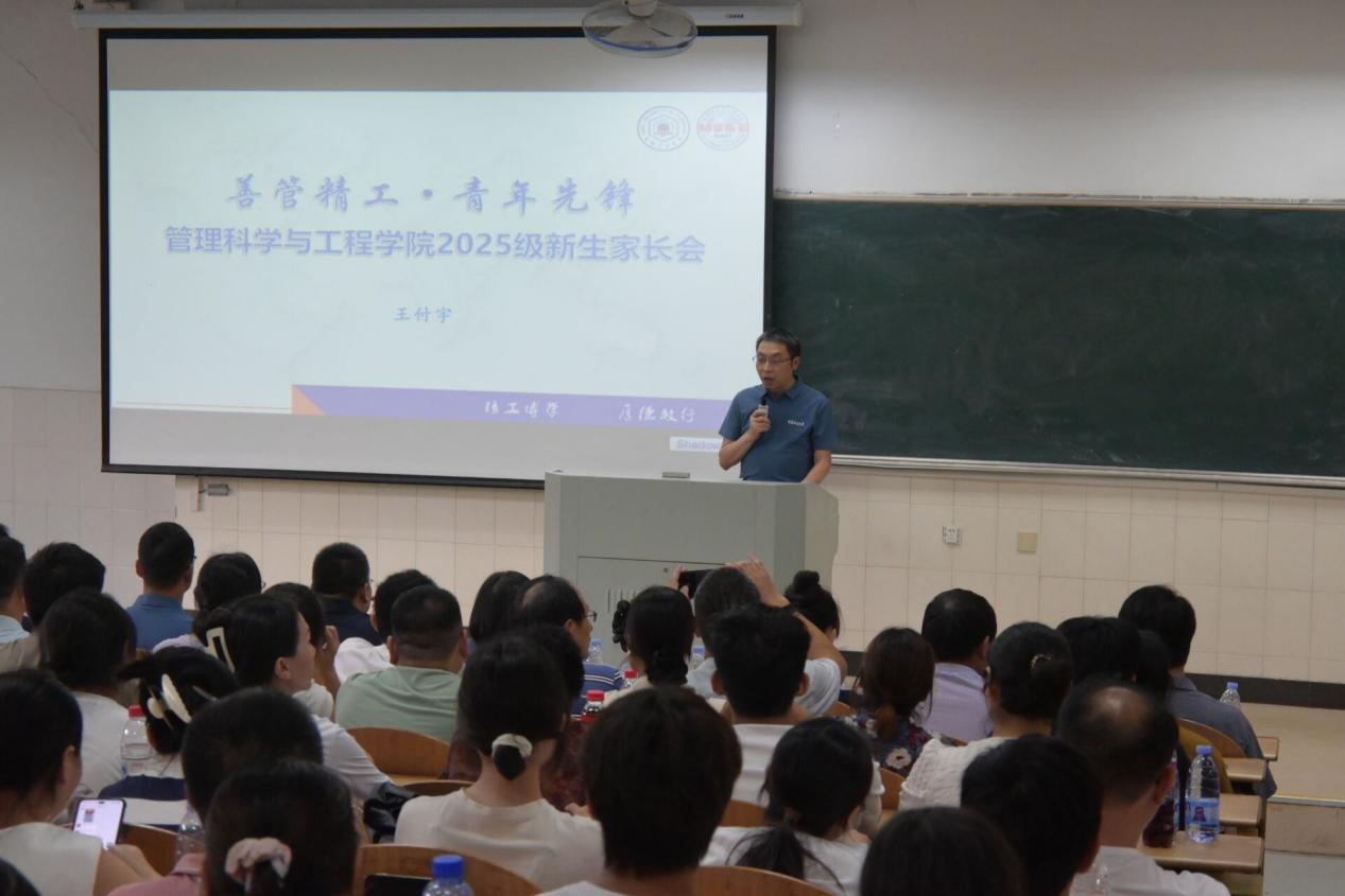 为构筑家校协同育人桥梁,助力新生顺利适应大学生活,9月6日下午,管理科学与工程学院于阶教103召开2025级新生家长会,学院领导班子、系室主任、2025级班主任、辅导员以及全体新生家长参加本次会议。会议由院党委书记王军主持。