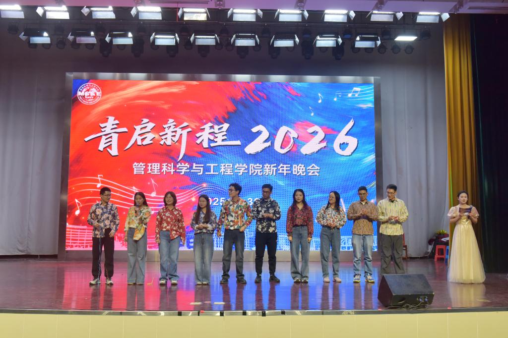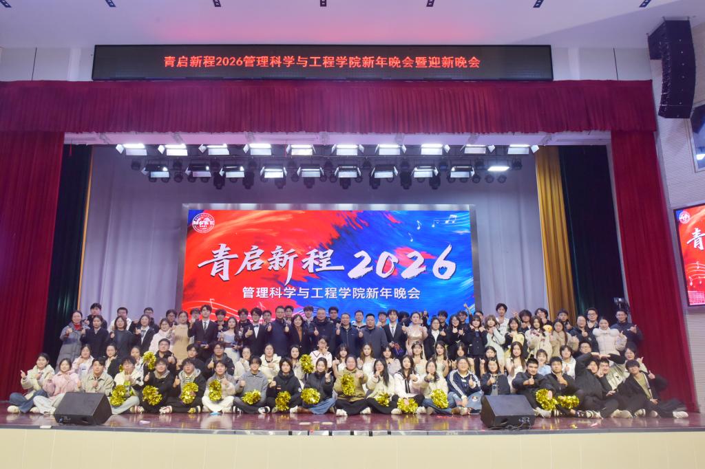 12月30日晚,管理科学与工程学院在秀山校区大学生活动中心报告厅举办“青启新程2026”新年晚会暨迎新晚会。学院党政领导班子,各系室主任,支部书记,教师代表、全体辅导员老师及各年级学生代表等共500余人参加晚会。