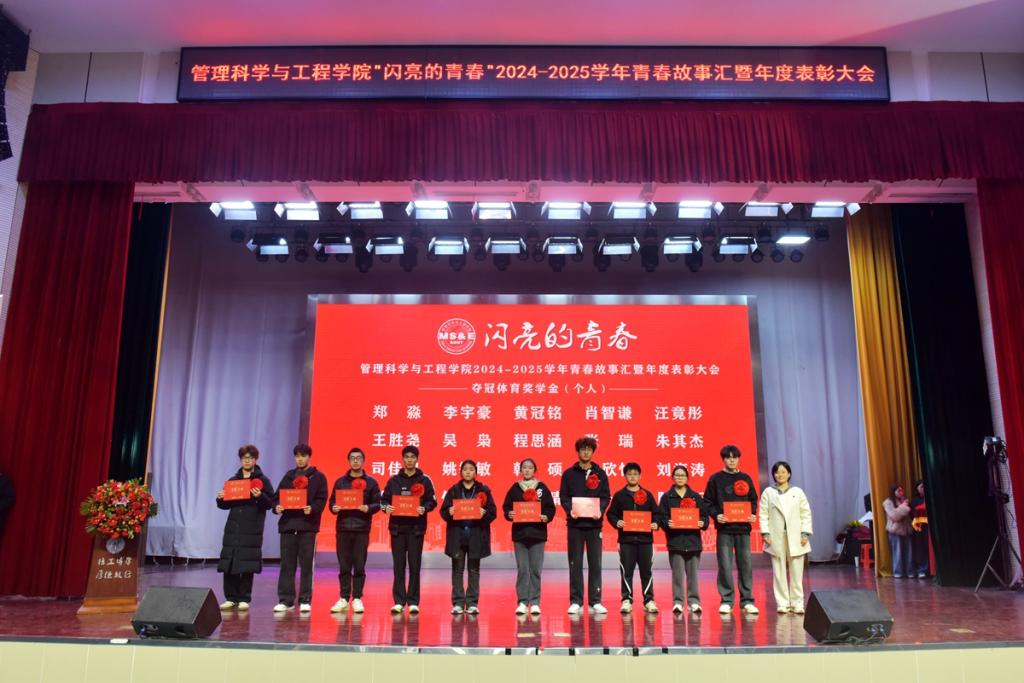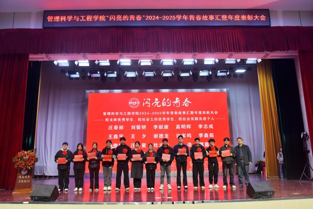 12月30日晚,管理科学与工程学院2024-2025学年青春故事汇暨年度表彰大会在秀山校区大学生活动中心举行。校党委常委、副校长闵凡飞,校党委常委、宣传部、统战部部长王菁,学生工作部、研究生院、党委教师工作部、发展规划处、教务处、科研院相关部门负责同志,学院党政领导班子,各系室主任、支部书记、教师代表、全体辅导员老师、受表彰的先进集体和先进个人及各年级学生代表等共500余人参加大会。