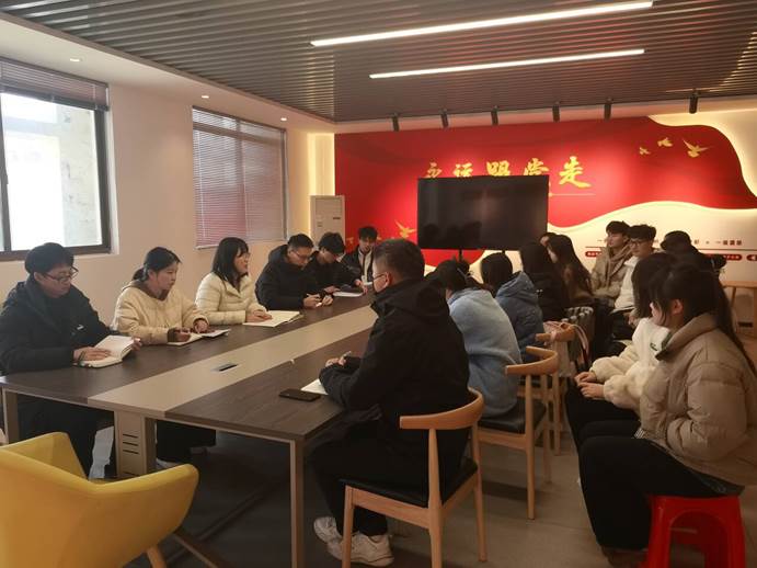 会上,赵玉婷首先肯定了寒假期间“返家乡”社会实践工作的开展情况,安排部署了新学期共青团相关工作,重点就“雷锋月”系列活动、“挑战杯”、“互联网+”竞赛动员及申报事项安排推进。同时,她强调学生干部要有大局意识,要结合部门特点、主动规划特色工作,要结合自身发展,积极提升工作质量。李军慧就新闻稿件方面加强培训,结合稿件分析指出问题,提出改进意见。曹宇主要对于学院新媒体各平台提出了规范化的要求以及下一步工作安排方向。