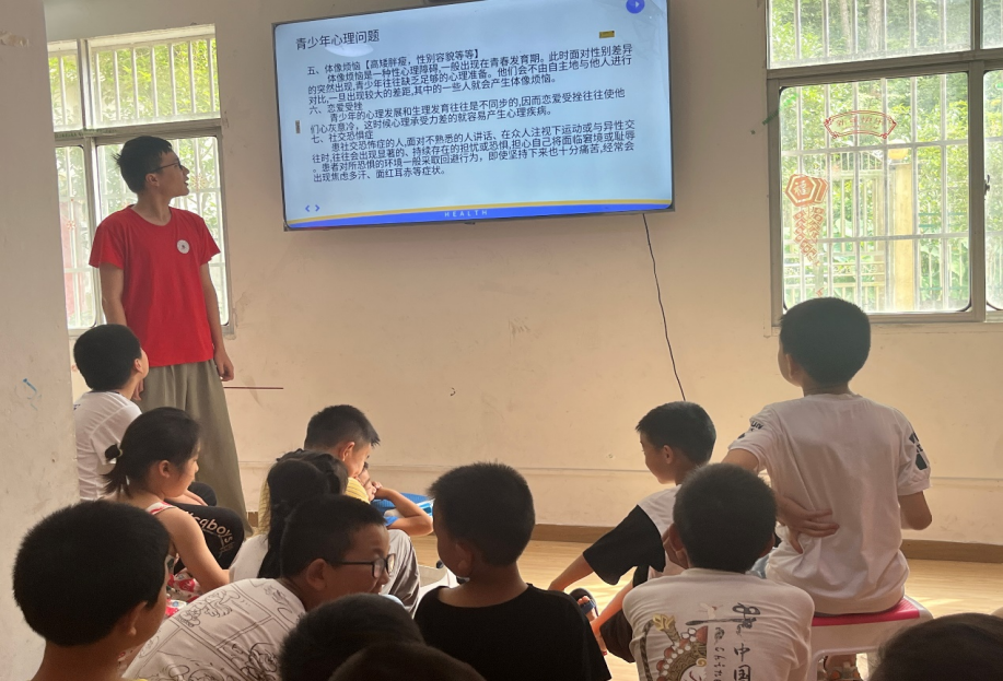 蹲下来,与孩子们交朋友,为他们讲述袁隆平爷爷“禾下乘凉梦的故事”,在他们心中种下一粒面对困难时坚守梦想、勇往直前的种子;抱一抱,与孩子们心贴心聊聊天,为孩子做心理健康知识传授,教会孩子们学会关注自身心理需求,拥有健康的身心。实践队员们给毛尖山乡及周边30余名农村留守儿童带去关怀,提供了心理疏导、个人兴趣发展、学习方法指导等服务,引导了儿童们树立远大理想与目标,帮助他们塑造积极阳光、健康向上的心态。