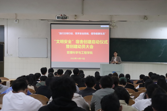 于10月15日下午在阶教101召开了文明安全宿舍创建动员大会。院副处级辅导员赵颖、院团委书记万媛媛、各年级辅导员以及各班级学生干部、寝室长、学生代表参会。