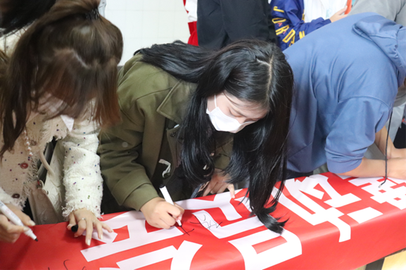 最后,赵颖作文明安全宿舍创建动员讲话,强调了开展此次活动的要求、目的和重要性,以及结合日常生活真实事例说明了建设文明安全宿舍的必要性,并对创建活动提出三点要求,一是参与创建活动的辅导员、学生干部、寝室长、同学落实落细创建内容,把每一项措施落到实处;二是强化纪律观念和规矩意识,强调对于违反学校规章制度的行为“零容忍”的态度;三是呼吁参会学生做文明安全宿舍创建活动的传播者、建设者和监督者,勇于亮身份树形象,引领新风尚。动员大会结束后,学生代表在横幅上签字明志并合影留念。