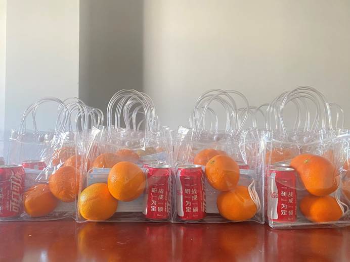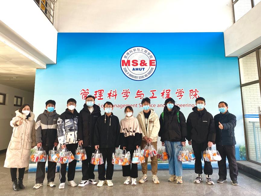 交流结束后,学院领导班子为同学们送上了充满祝福的考研加油包,加油包里面的物品寓意满满,包括学院定制的书签寄语、代表轻松心情的可口可乐、寓意“心想事成”的橙子等,此外,学院还为每位考研学子发放了文具套装以及酒精喷雾、口罩、退烧药等物品,表达了学院领导老师对考研学子的满满祝福,助力同学们以更好的状态备战考试。