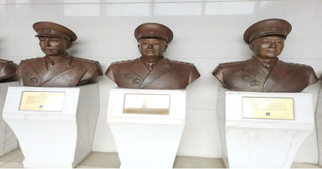 伴着刚下过雨的新鲜空气,踏着依旧湿润的地板,雨过天晴后的井冈山革命博物馆,显得愈发的让人肃穆。入目大片的红色,经典庄重。走入博物馆,阅读周围的文字,了解到井冈山革命根据地是土地革命战争时期中国共产党在湖南、江西两省边界罗霄山脉中段创建的第一个农村革命根据地。往后走,映入我们眼帘的是陈列一排的红军将士的铜像,一个个英勇无畏的面容将我们带入那个动荡不安的时代。虽硝烟四起,但依旧能看见红军将士们浴血奋战,勇往直前的身影。再往深处去,一架红五军用过的重机枪架陈列在前。一杆枪就是一位红军,一位将枪口对准侵略者,眼神坚毅的红军。习近平总书记说过“回想过去那段峥嵘岁月,我们要向革命先烈表示崇高的敬意,我们永远怀念他们、牢记他们,传承好他们的红色基因。”