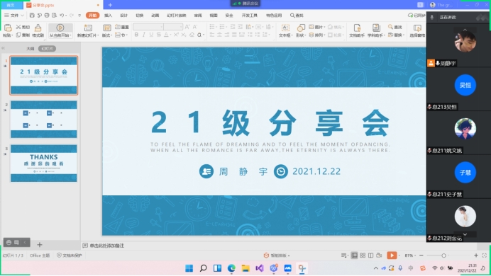 12月22日,管工学院信管源动力协会于线上举办了大学学习生活交流分享会。此次分享会由协会负责人周静宇主持,信管21级新生全体参加。