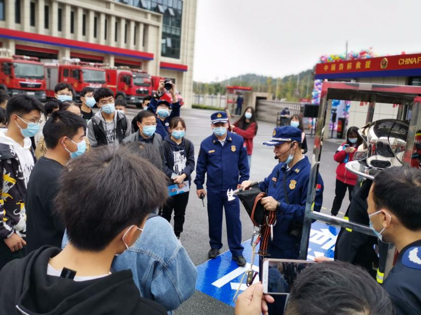 为响应消防月宣传消防知识的号召,加强同学们的消防安全意识,切实保障师生在突发事件来临时的生命安全。近日,由校安全保卫处副处长何义、管理科学与工程学院辅导员任静带领30名学生去参加马鞍山市消防救援支队举行的“欢声消语”嘉年华活动。
