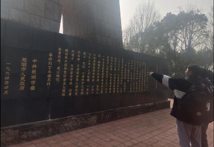 “壮士头颅为党落,好汉身躯为群裂”为了纪念革命先烈,继承红色精神,1月19日,安徽工业大学寻访红色小分队来到了芜湖市镜湖区神山路芜湖烈士陵园进行参观学习。队员们在这里追溯红色记忆,重温红色历史,传承红色基因,缅怀革命先烈,追寻先烈足迹,学习红色文化。
