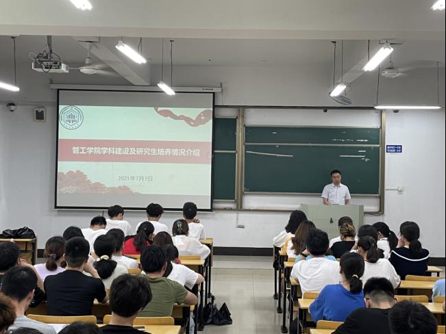 7月7日上午,管工学院在汇文楼D105召开2022年研究生招生宣传暨考研指导会议,会议由院科研副院长王付宇主持,院党委副书记王功成、毕业班辅导员赵玉婷、2018级100余名考研学生参加了会议。