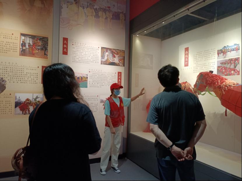 图为工作人员为实践队员讲解广德西坞马灯文化。