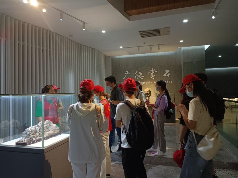 图为工作人员为实践队员讲解广德赏石文化。