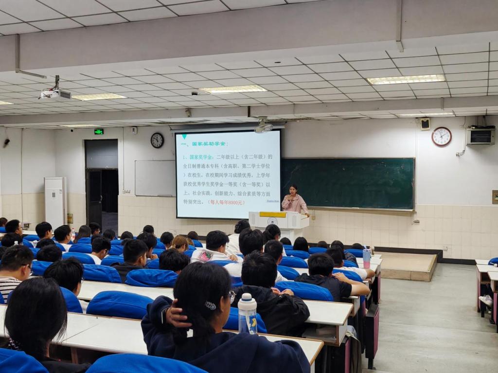 为更好地向学生宣传国家资助政策,普及资助知识,达到资助常识人人知的要求,10月18日,管理科学与工程学院于阶教102开展资助政策宣讲“两节课”活动,2024级辅导员李军慧宣讲,2024级全体新生参与。